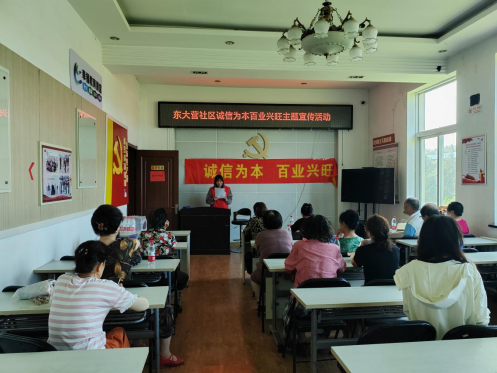 除现场活动外,街道社区还充分利用电子显示屏、宣传栏、放张贴宣传资料、条幅等方式宣传诚信内容,让诚信潜移默化地影响融入到居民生活中去,营造“人人知诚信、事事讲诚信”的良好氛围。